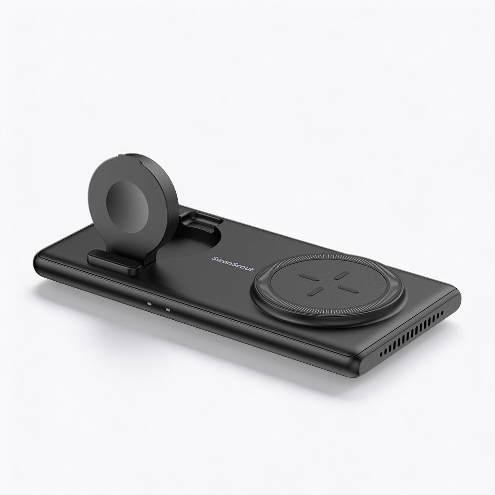 Зарядната станция 3 в 1 на SwanScout поддържа устройства, които не са Apple и са съвместими със стандартите за безжично зареждане (напр. избрани телефони с Android и безжични слушалки), за зоните за телефон и слушалки, но зоната за часовник е ексклузивна за Apple Watch. За магнитно зареждане, устройствата преди iPhone 12 изискват магнитна съвместимост или магнитен калъф.
