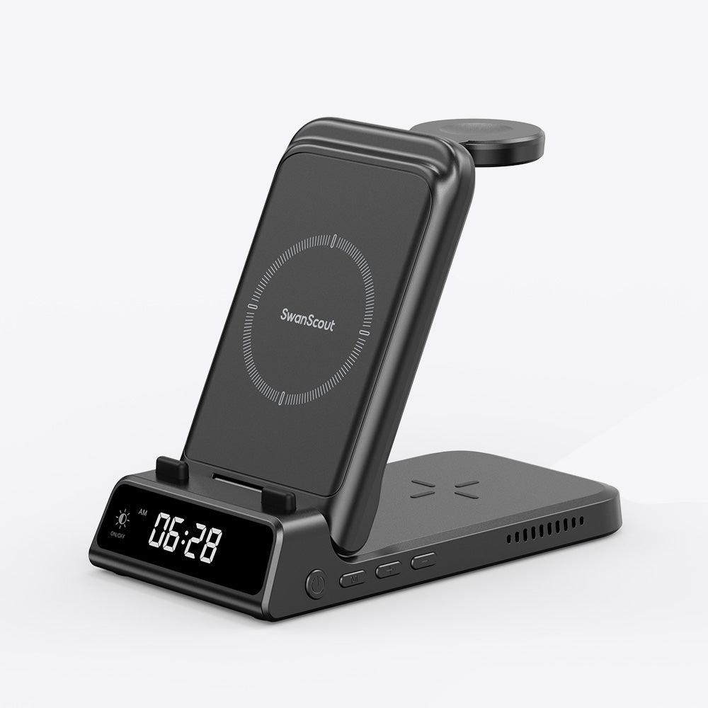 Bezdrátové nabíječky SwanScout kompatibilní s produkty Apple disponují architekturou s více cívkami a přesným zarovnáním, které podporuje iPhony s funkcí MagSafe, Apple Watch Series 10 až Ultra a AirPods kompatibilní s Qi. Jsou navrženy pro současné nabíjení s optimalizovaným rozložením energie, eliminují nepořádek s kabely a zároveň udržují stabilní výkon napříč zařízeními. Jsou ideální pro použití doma i v kanceláři a poskytují efektivní a organizované napájení přizpůsobené ekosystému Apple.