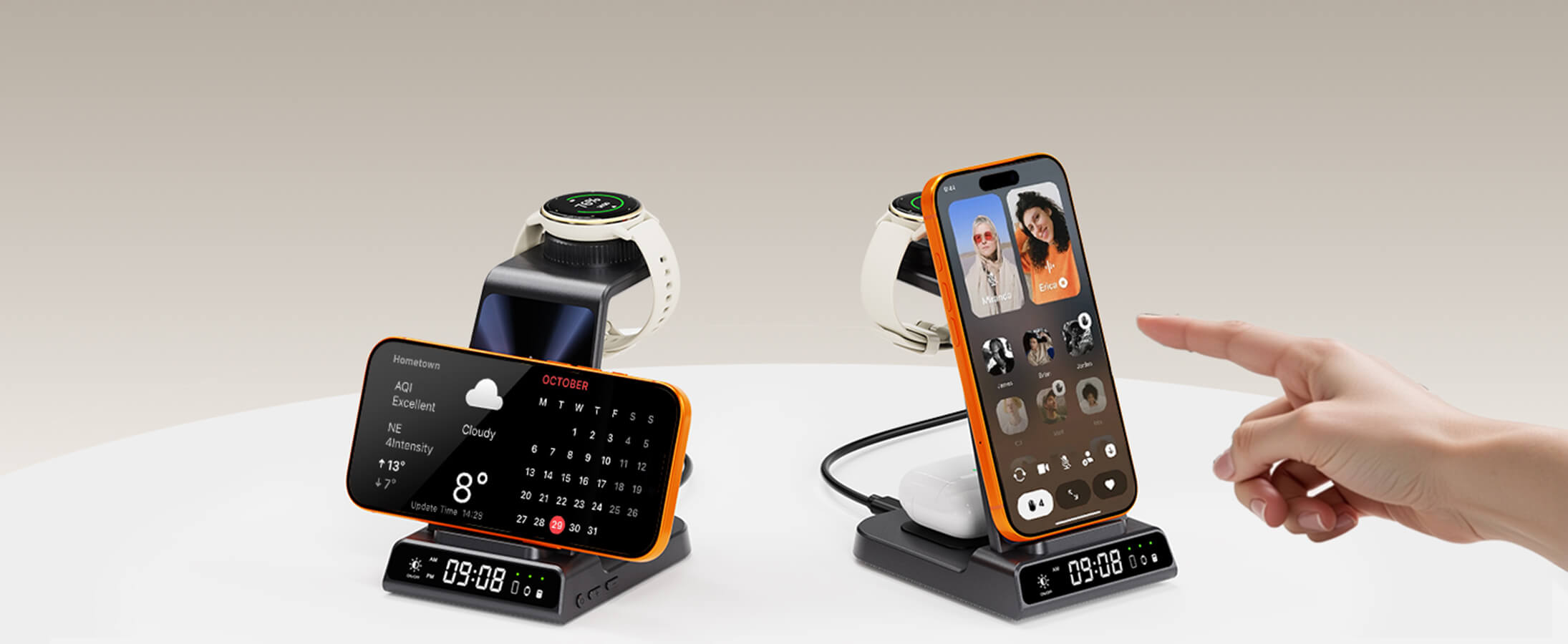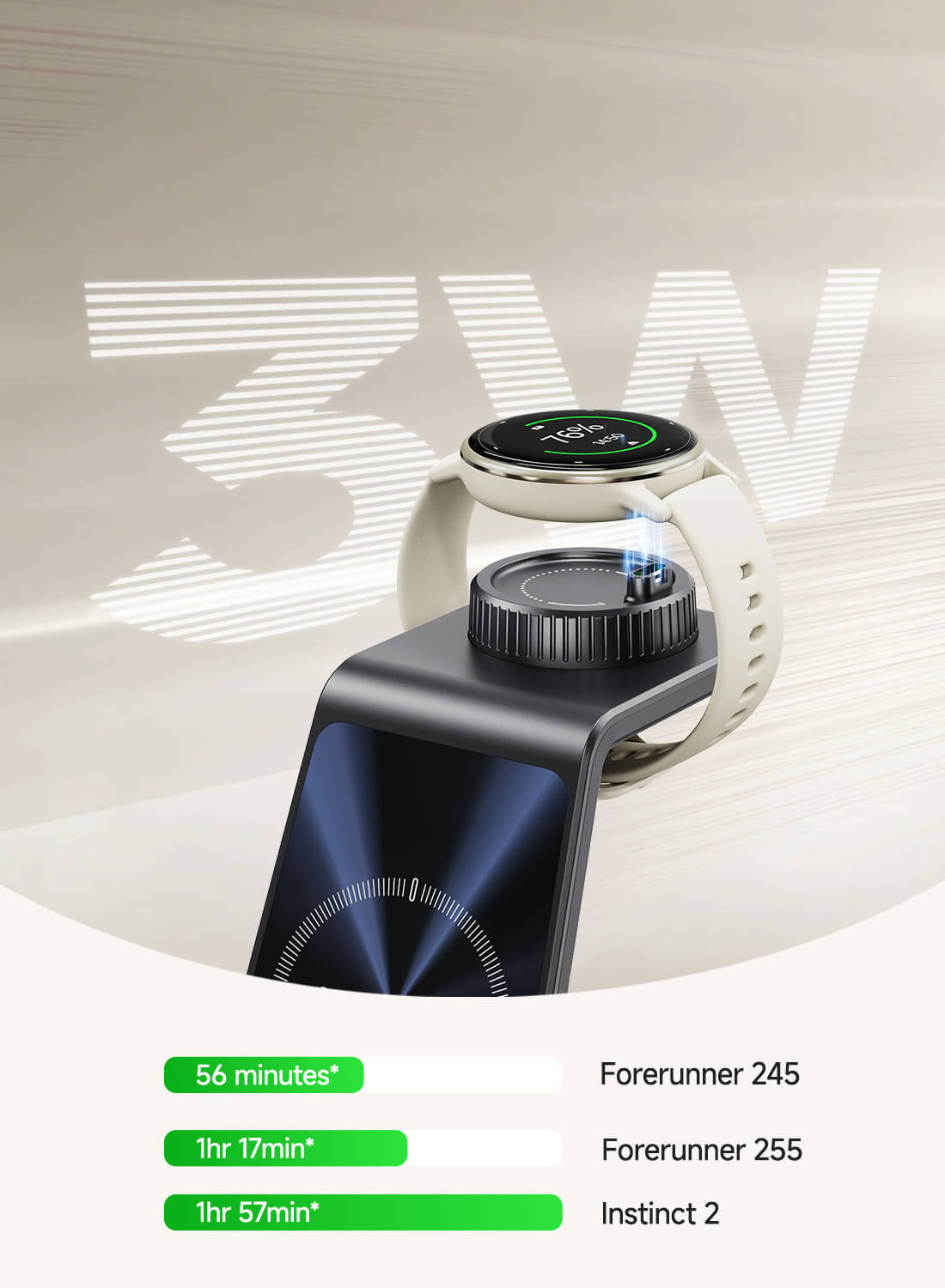 • 3v1 bezdrátová nabíječka: Nabíjí hodinky Garmin, bezdrátově nabíjený telefon a pár bezdrátových sluchátek s nabíjecími pouzdry současně, čímž šetří místo.