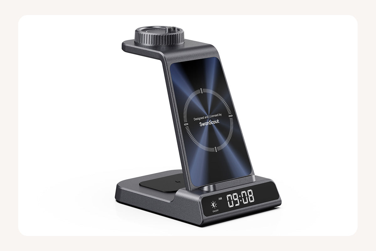 SwanScout C01GM - 3v1 bezdrátová nabíjecí stanice pro Garmin hodinky Prodejní cena$42.99 USD Běžná cena$53.74 USD
