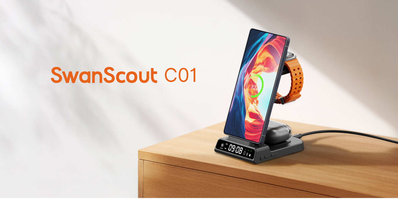 SwanScout C01 – 3v1 bezdrátový nabíjecí stojan pro Samsung