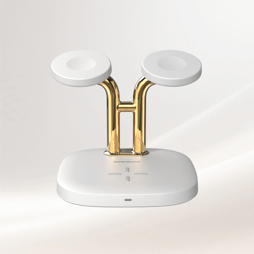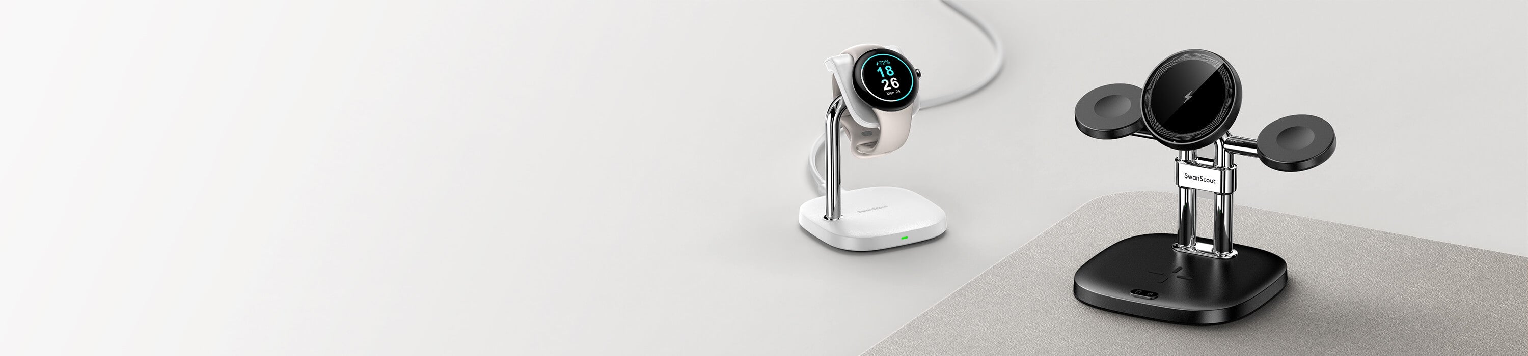 Kestävällä metallijalustalla varustetut SwanScout-laturit pitävät kellosi ja muut laitteesi tukevasti sekä pysty- että vaaka-asennossa varmistaen vakauden liukumatta. Huolellisesti suunniteltu jalusta parantaa käytettävyyttä ja estää tehokkaasti vahingossa tapahtuvat putoamiset ja vauriot, tarjoten huolettoman latauskokemuksen.
