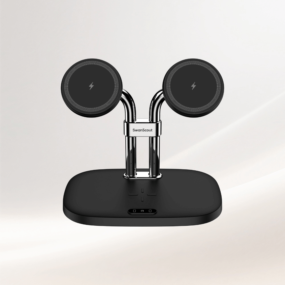 The swanscout 708M combines elegance and speed with fast wireless charging for iPhone and Apple Watch.Designed for daily convenience, the swanscout 708M is an ideal charging station for multiple Apple devices.