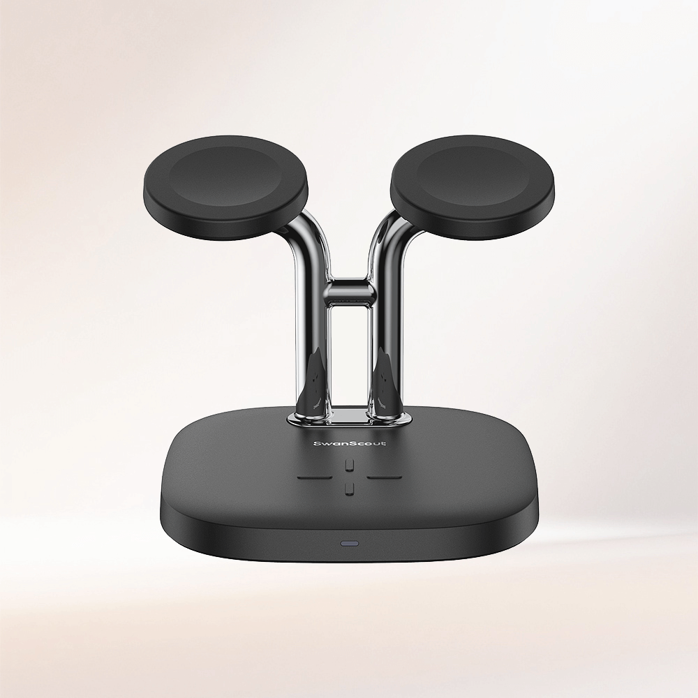 SwanScout 707S is a stable and elegant 3-in-1 wireless charger compatible with Samsung devices.The SwanScout 707S is a sleek Samsung wireless charging station built for daily efficiency and smart device organization.
