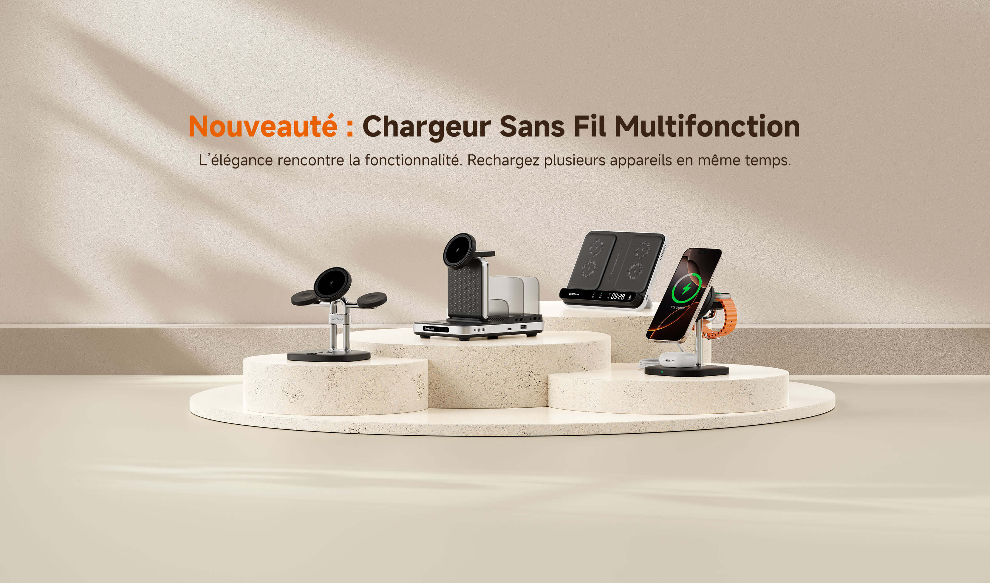 "Ce produit est bien fabriqué et permet de recharger le téléphone, les écouteurs et la montre en même temps. La fonction horloge le rend parfait pour la table de chevet - chargez tout pendant la nuit, prêt pour la journée."