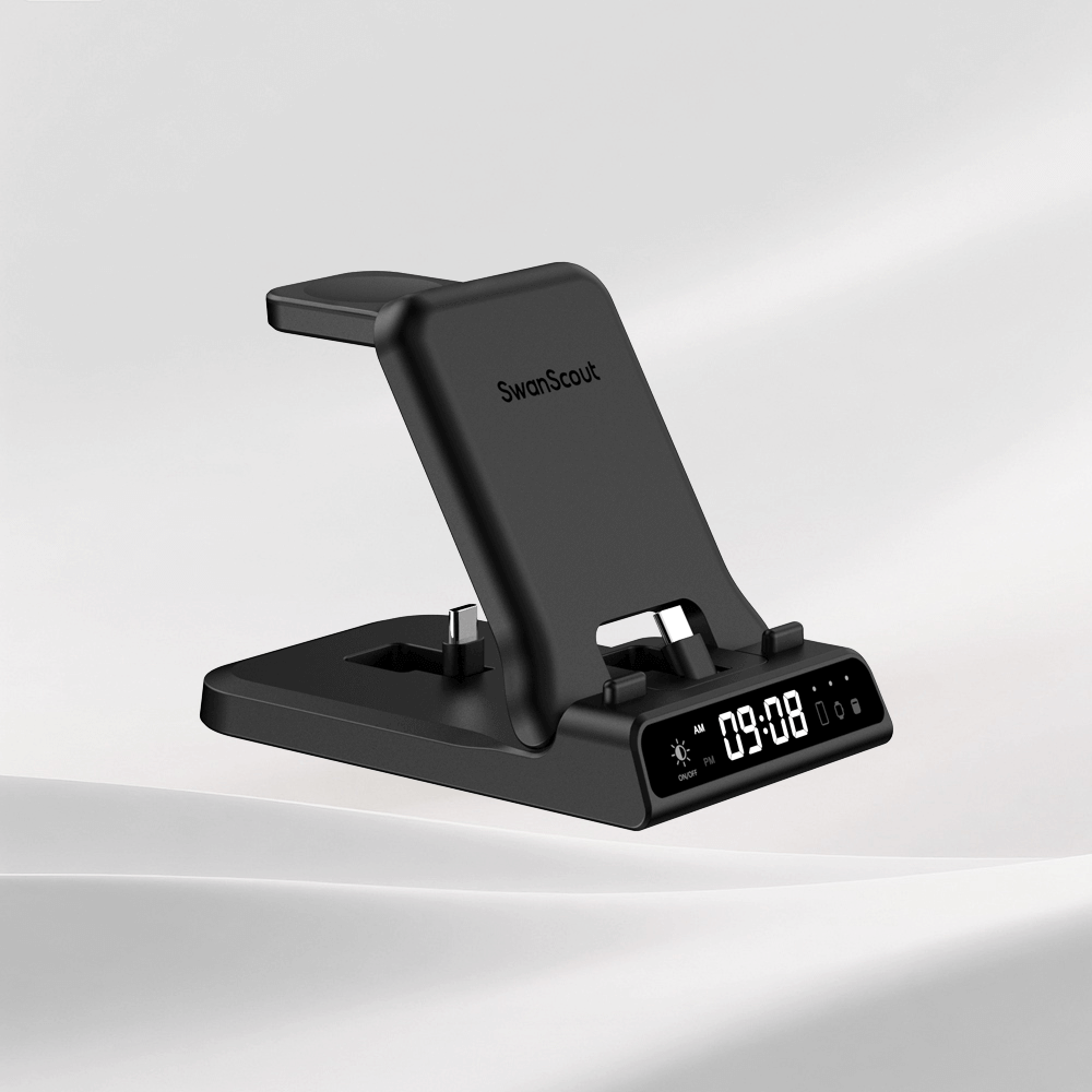 O carregamento rápido com fio oferece maior eficiência, entrega de energia mais rápida e perda mínima de energia, tornando-o ideal para recargas rápidas. O carregamento sem fio oferece conveniência e operação sem fio, permitindo que você carregue dispositivos simplesmente colocando-os na base de carregamento. Os carregadores SwanScout combinam velocidade e elegância para atender a diferentes necessidades.