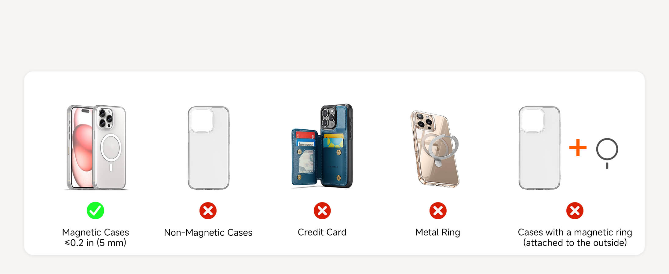 *And iPhone 11~8 Series with a Mag-safe/Magnetic Case