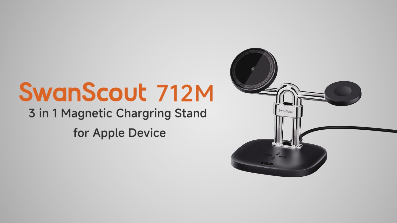 SwanScout 712M - Estação de Carregamento Sem Fios Magnética 3 em 1 para Apple