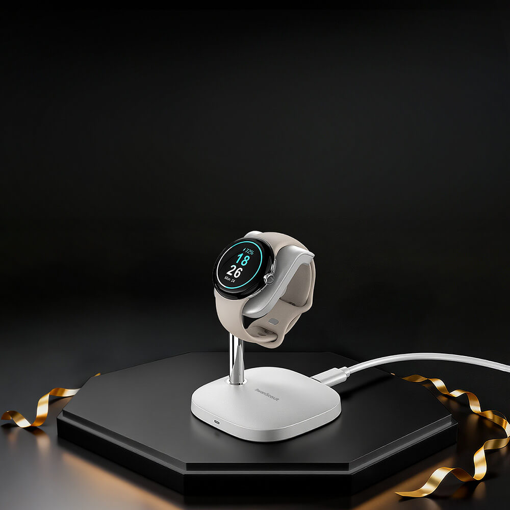 SwanScout 703G2 - 3-i-1 trådlös laddare för Pixel Watch 2/3 med klocka