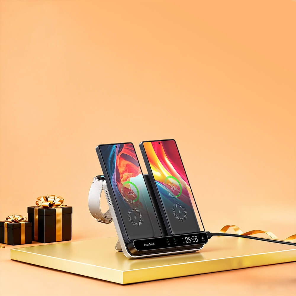 SwanScout 710S - Trådlös laddare för två telefoner och en klocka för Samsung