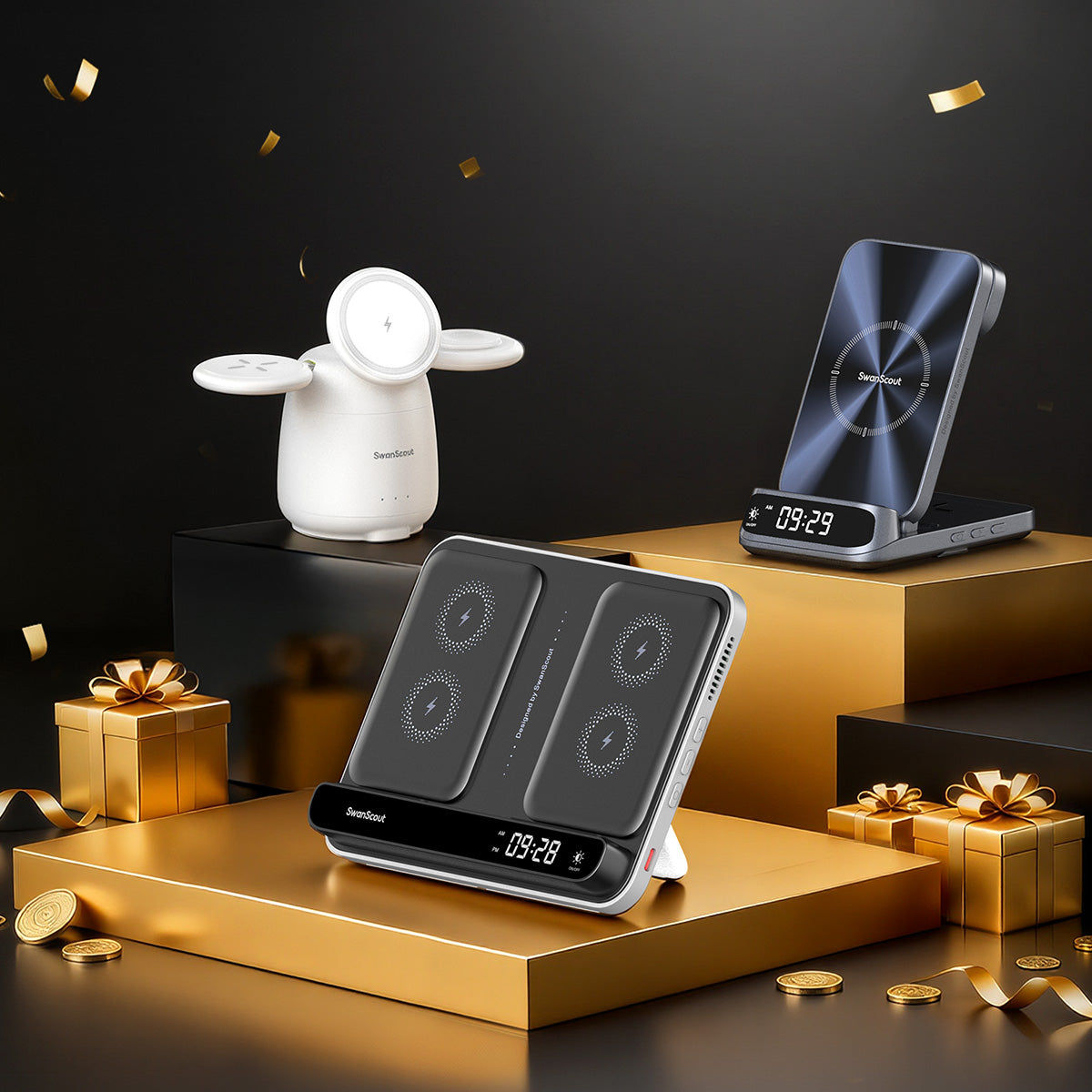 SwanScout 712SM – 3-i-1 magnetisk trådlös laddningsstation för Samsung