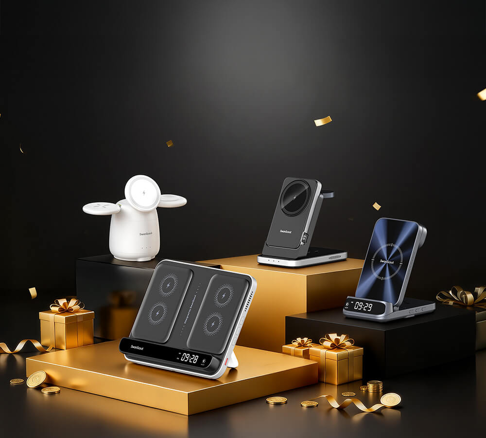 SwanScout 709M |  4-in-1 Foldable Wireless Charging Station for Apple Devices with Magnetic Features