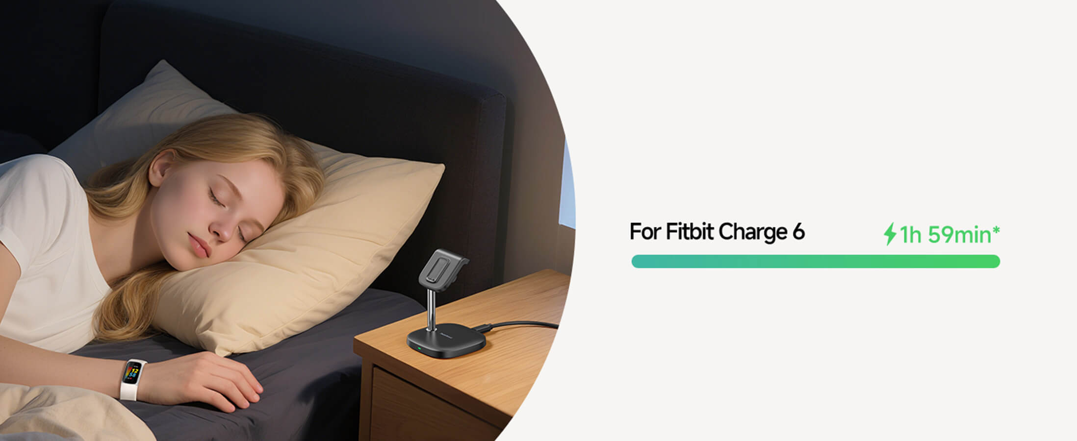 睡前快速为 Fitbit Charge 6 充电,确保整夜睡眠监测无忧