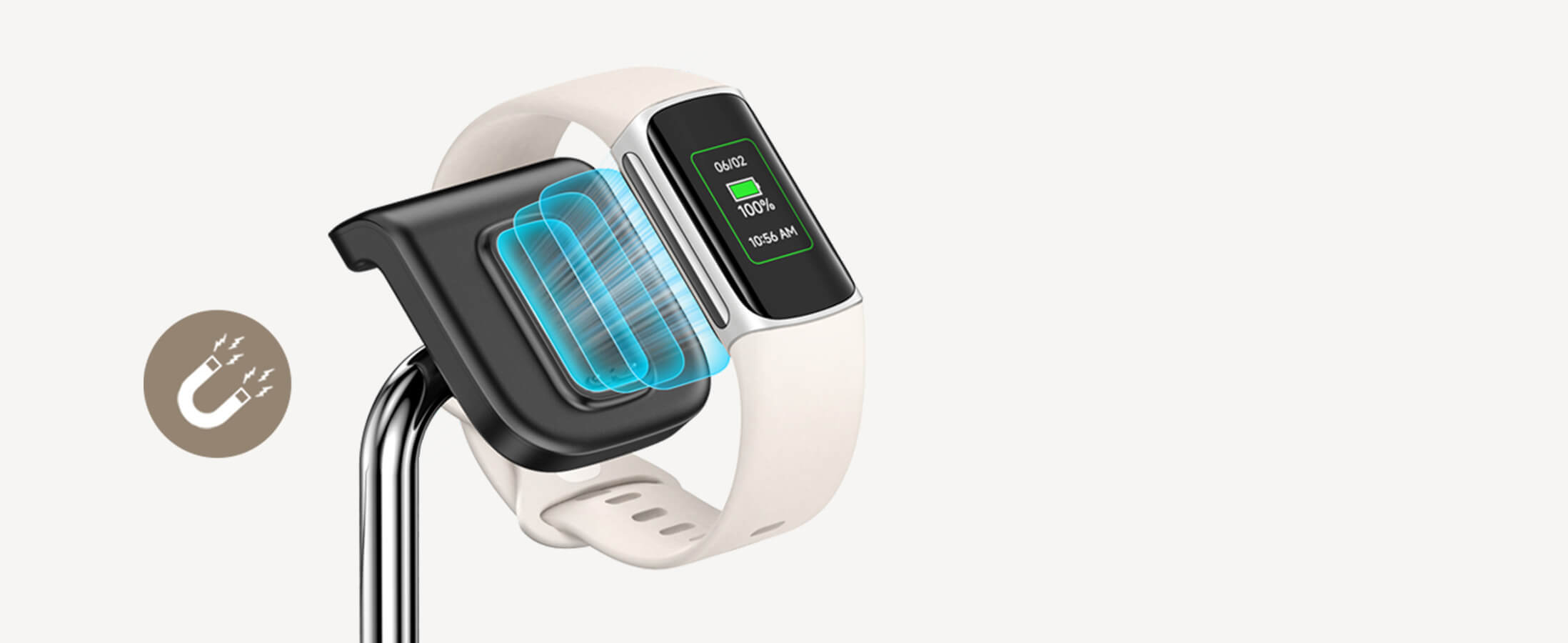 • 内置磁铁确保精准稳固对齐,轻松为手表充电。