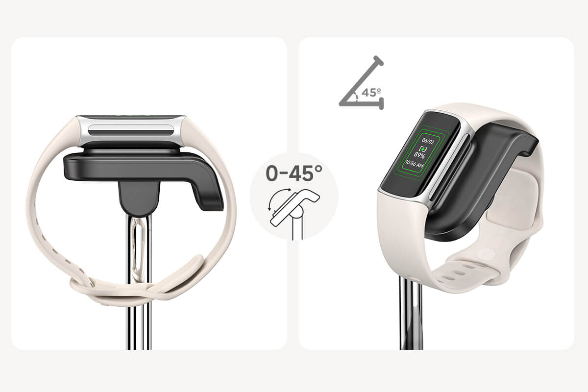 • 可调节支架支持 0°–45° 倾斜,便于在充电时获得最佳观看角度。