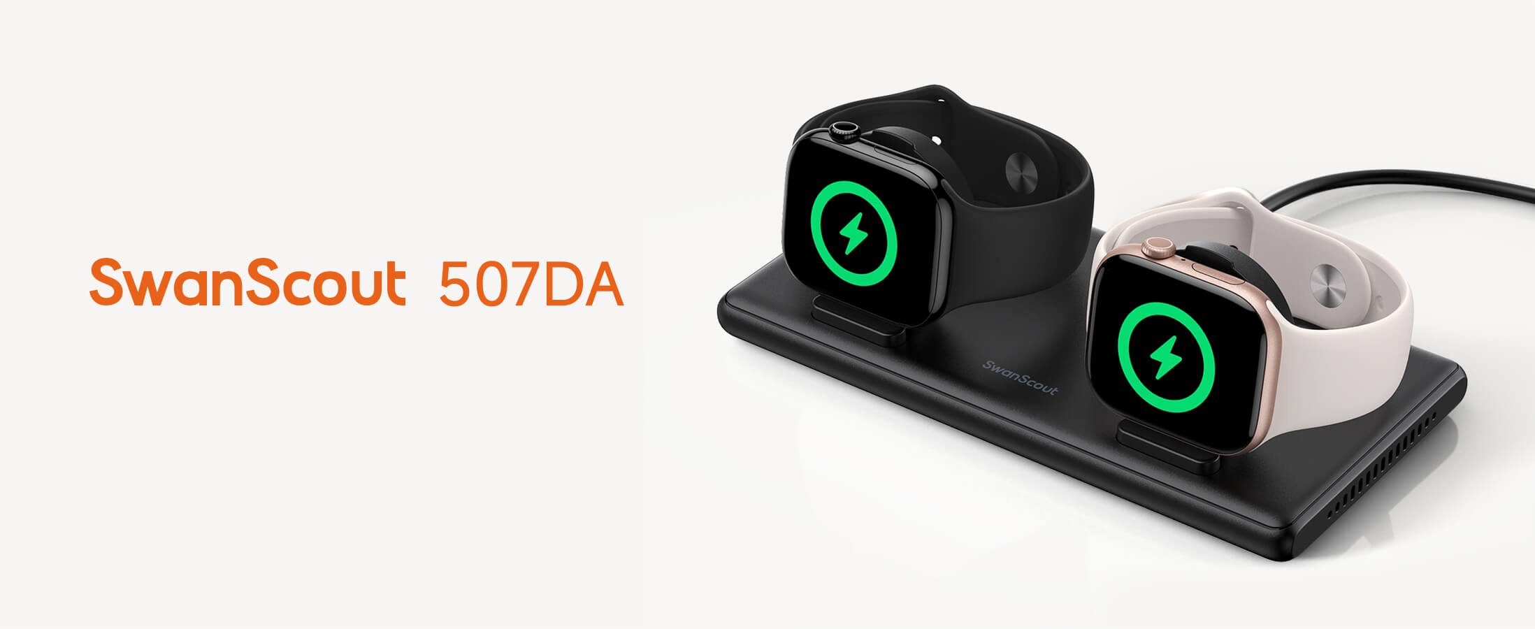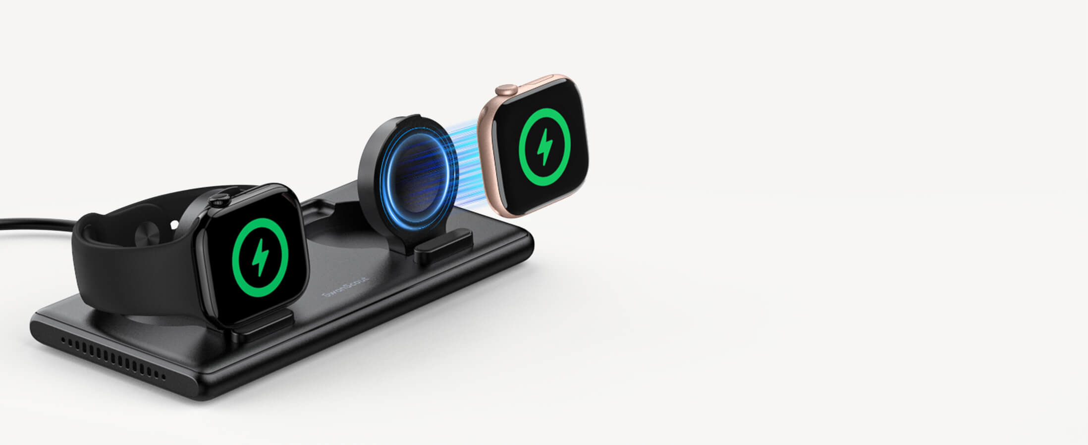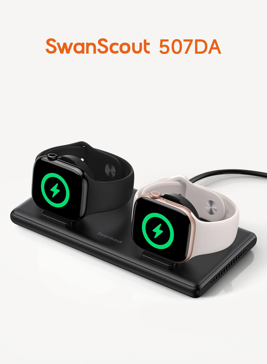 這款產品也可能被稱為「雙 Apple Watch 無線充電器」、「2 合 1 Apple Watch 無線充電器」、「2 合 1 Apple Watch 無線充電座」,雖名稱不同,但都能穩定高效地為多款 Apple Watch 充電。