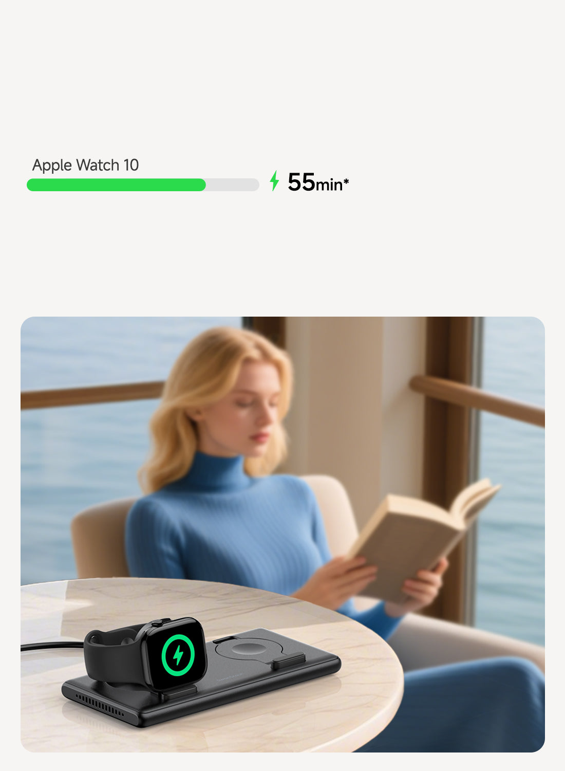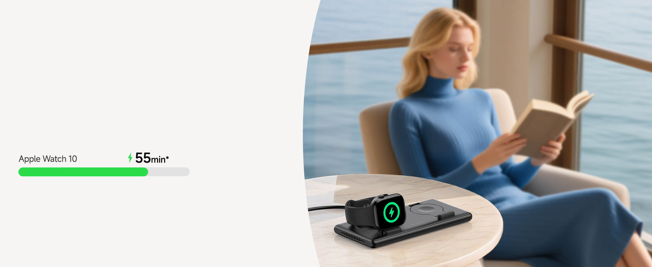 同時為兩支 Apple Watch 充電,無需輪流,適合一起充電的情侶或家人使用。