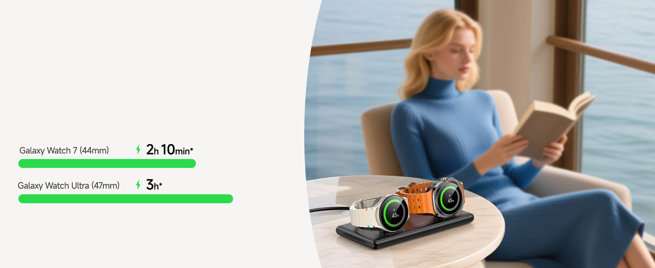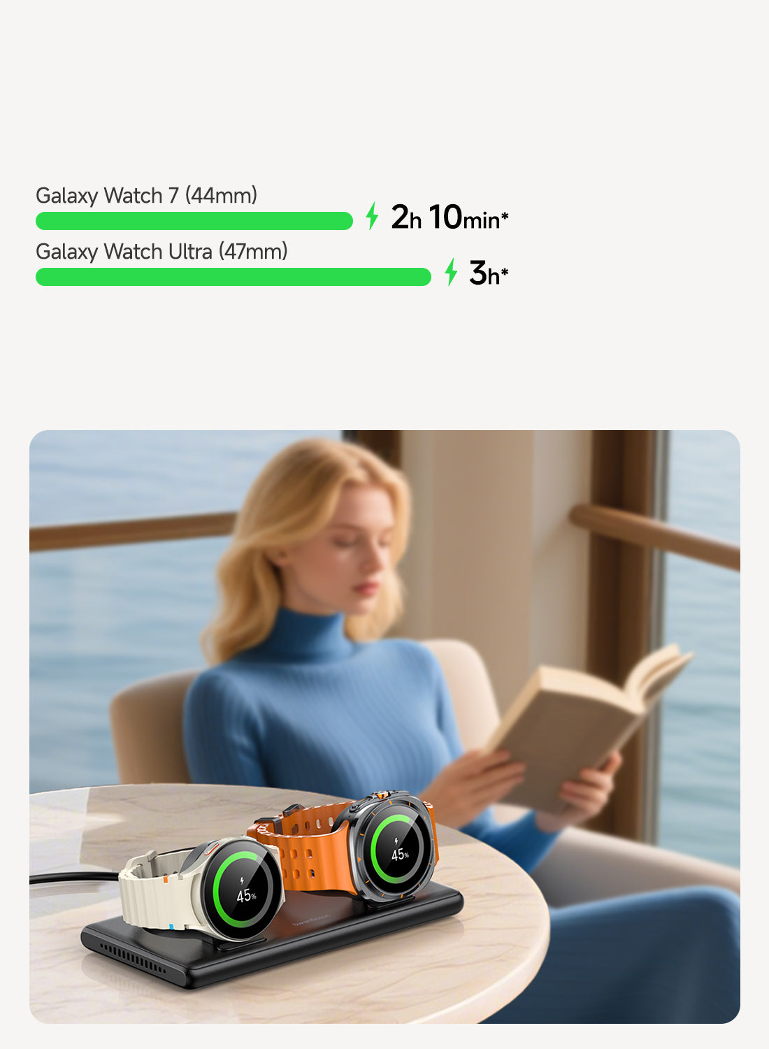 - 同時為兩隻三星手錶充電,無需交替使用。